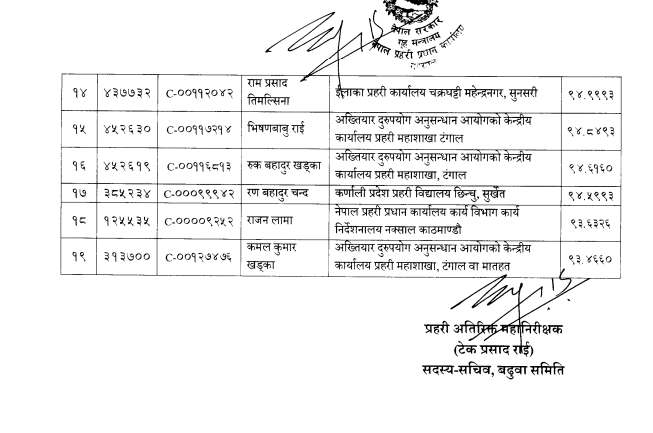प्रहरी प्रधान कार्यालय नक्सालमा बुधबार राती बसेको बढुवा समितिको बैठकले बढुवा सिफारिस गरेको हो ।