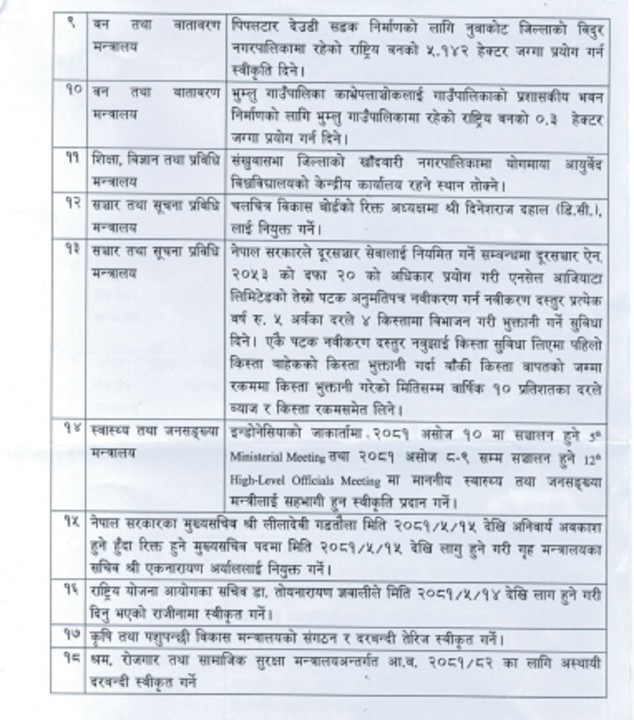 यस्ता छन् मन्त्रिपरिषद् बैठकका १८ निर्णय (सूचीसहित)