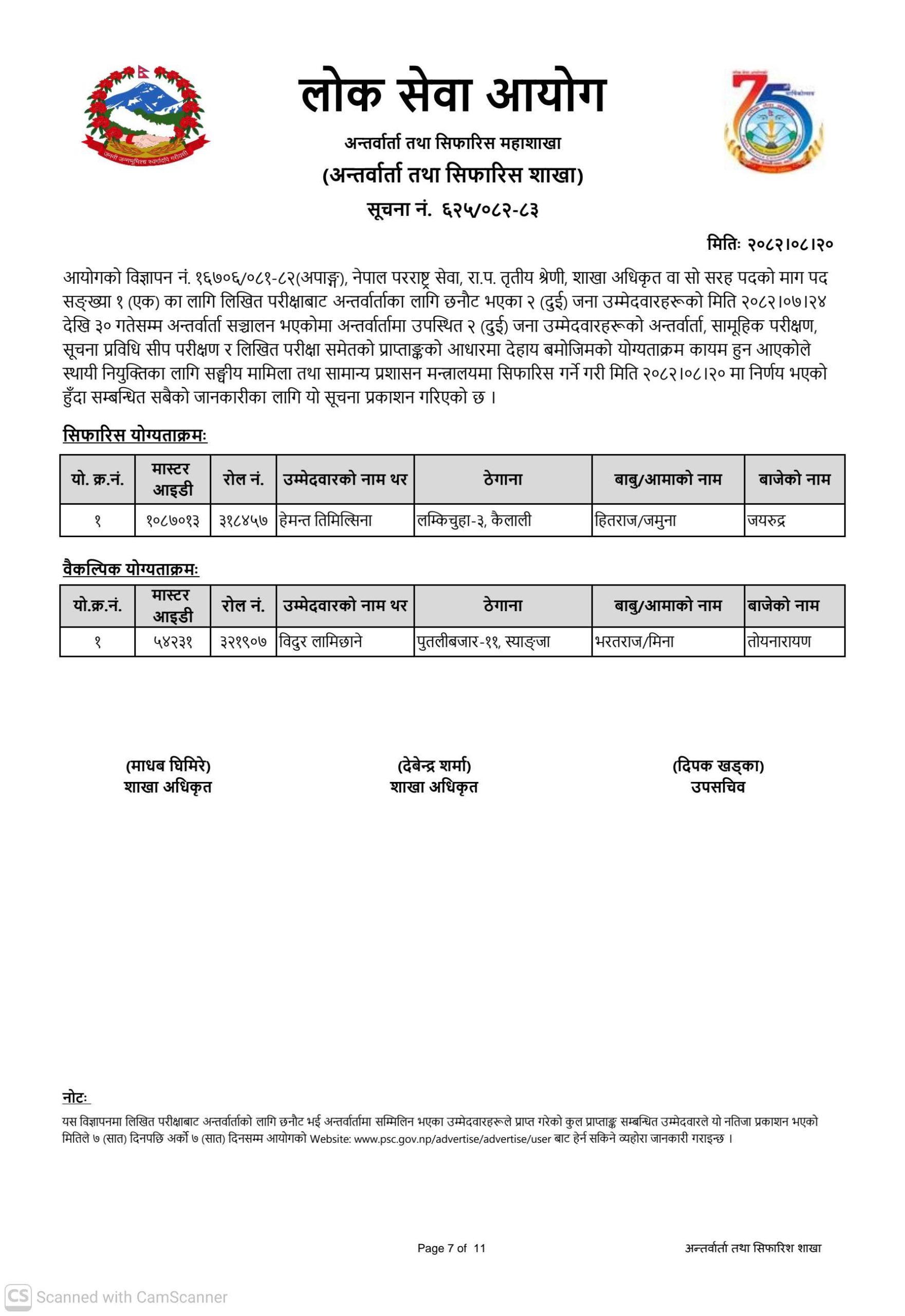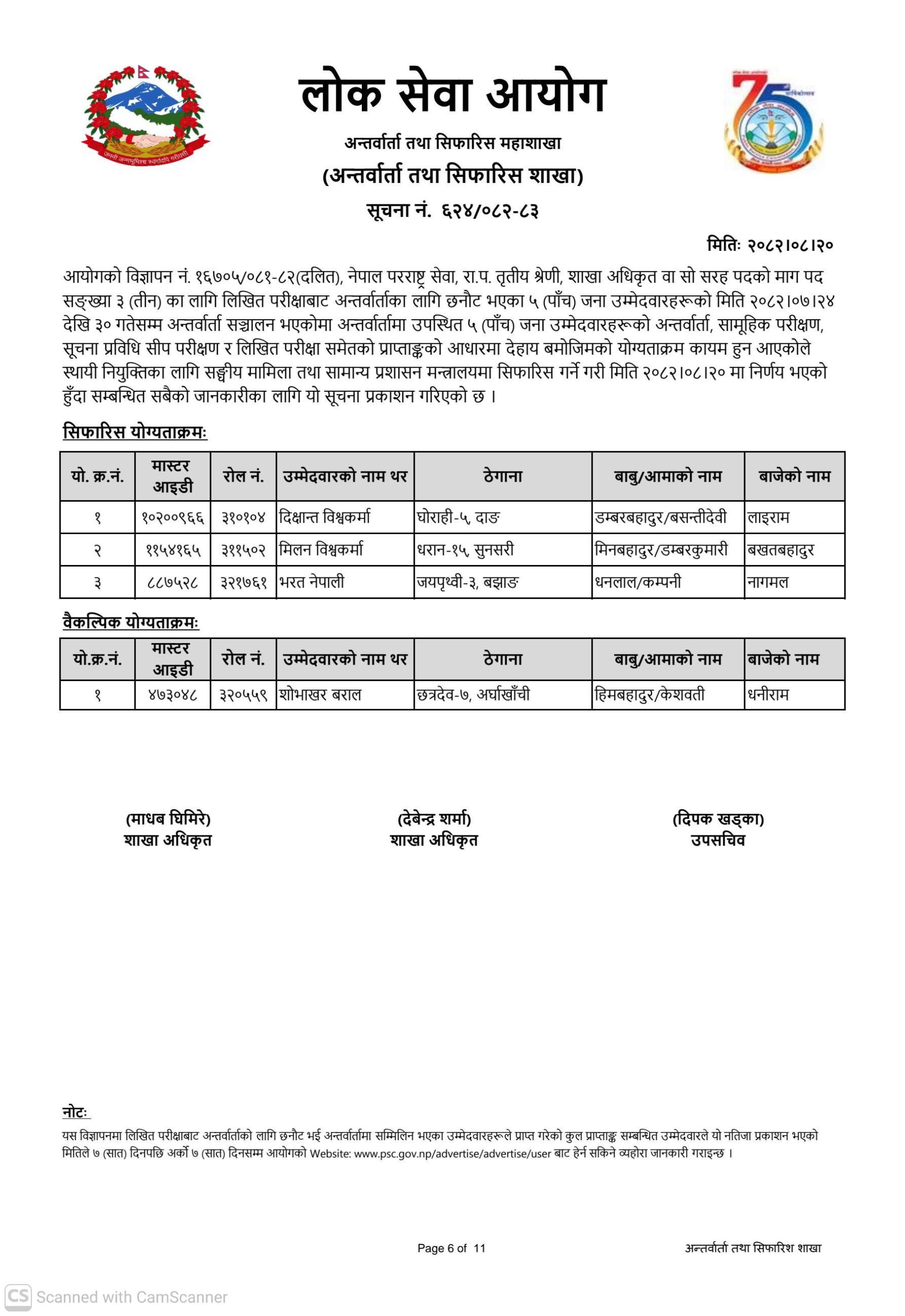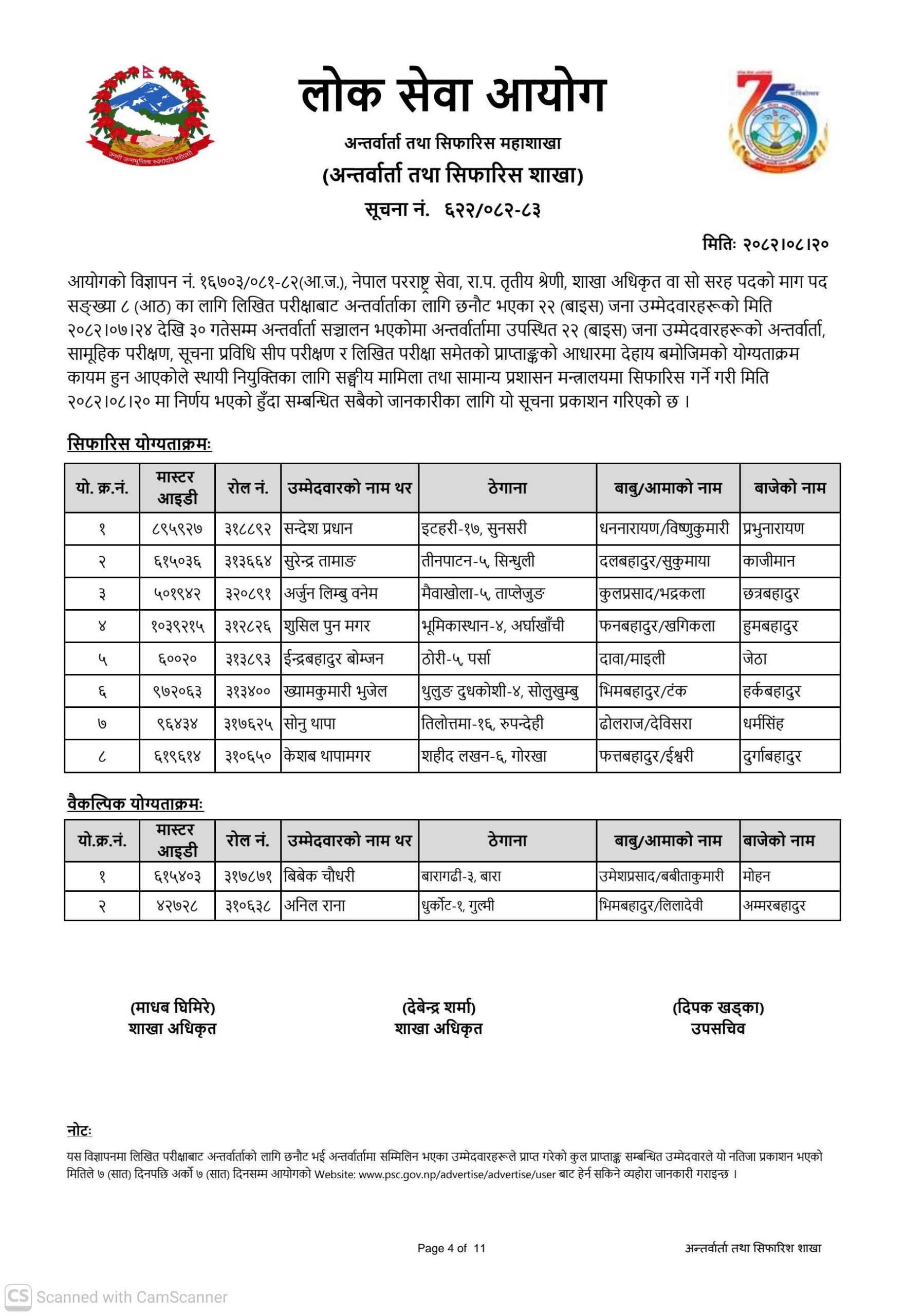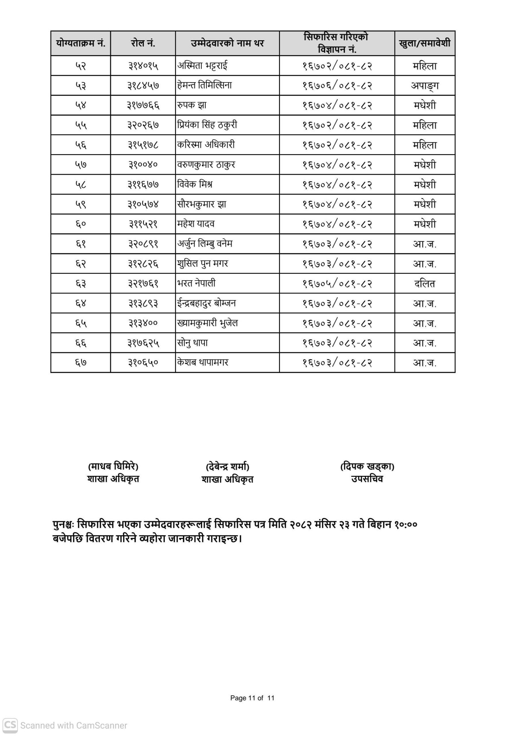 बढुवा सिफारिस भएकाहरुलाई मंसिर २३ मा सिफारिसपत्र प्रदान गरिने लोकसेवा अयोगले जनाएको छ ।
