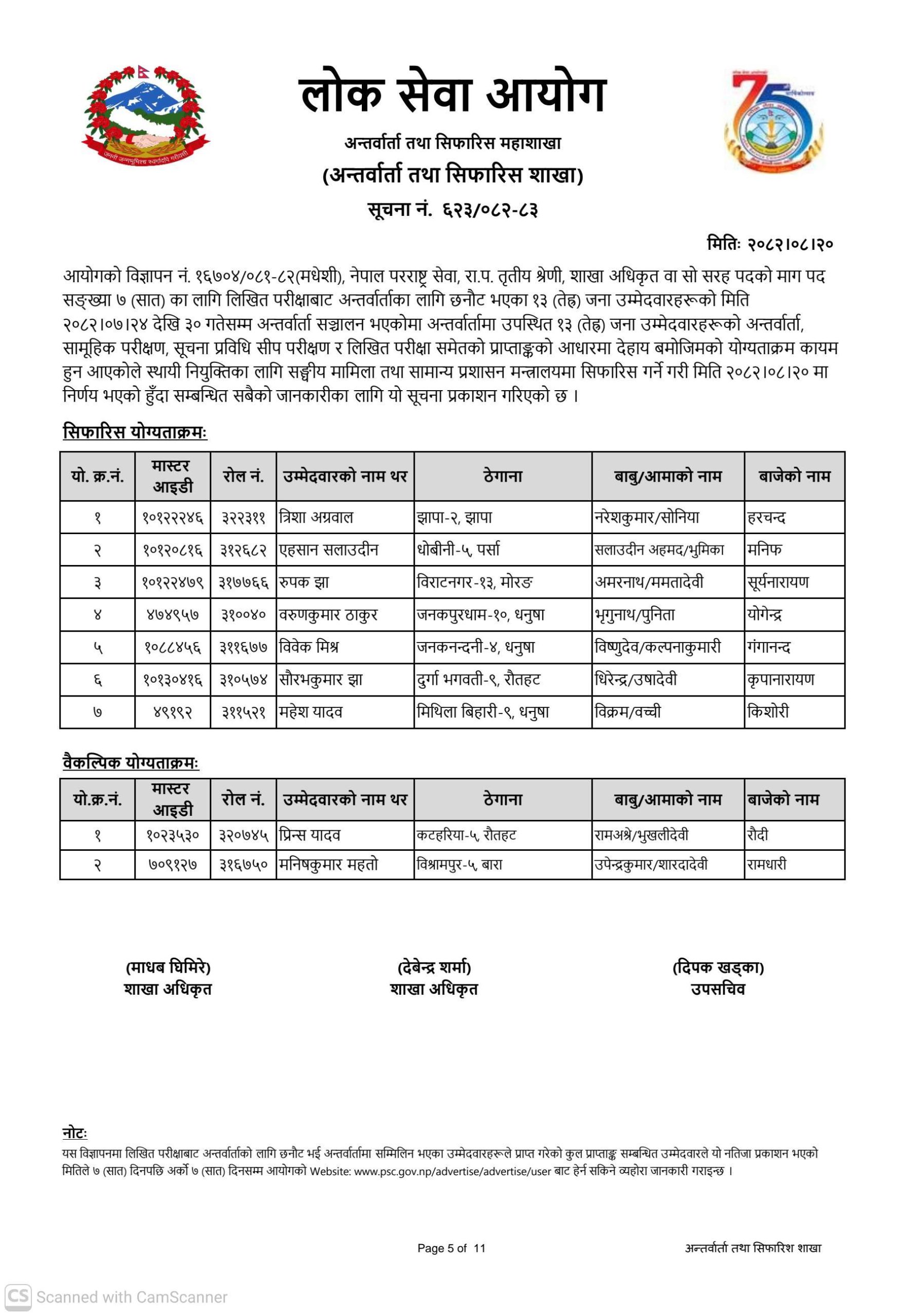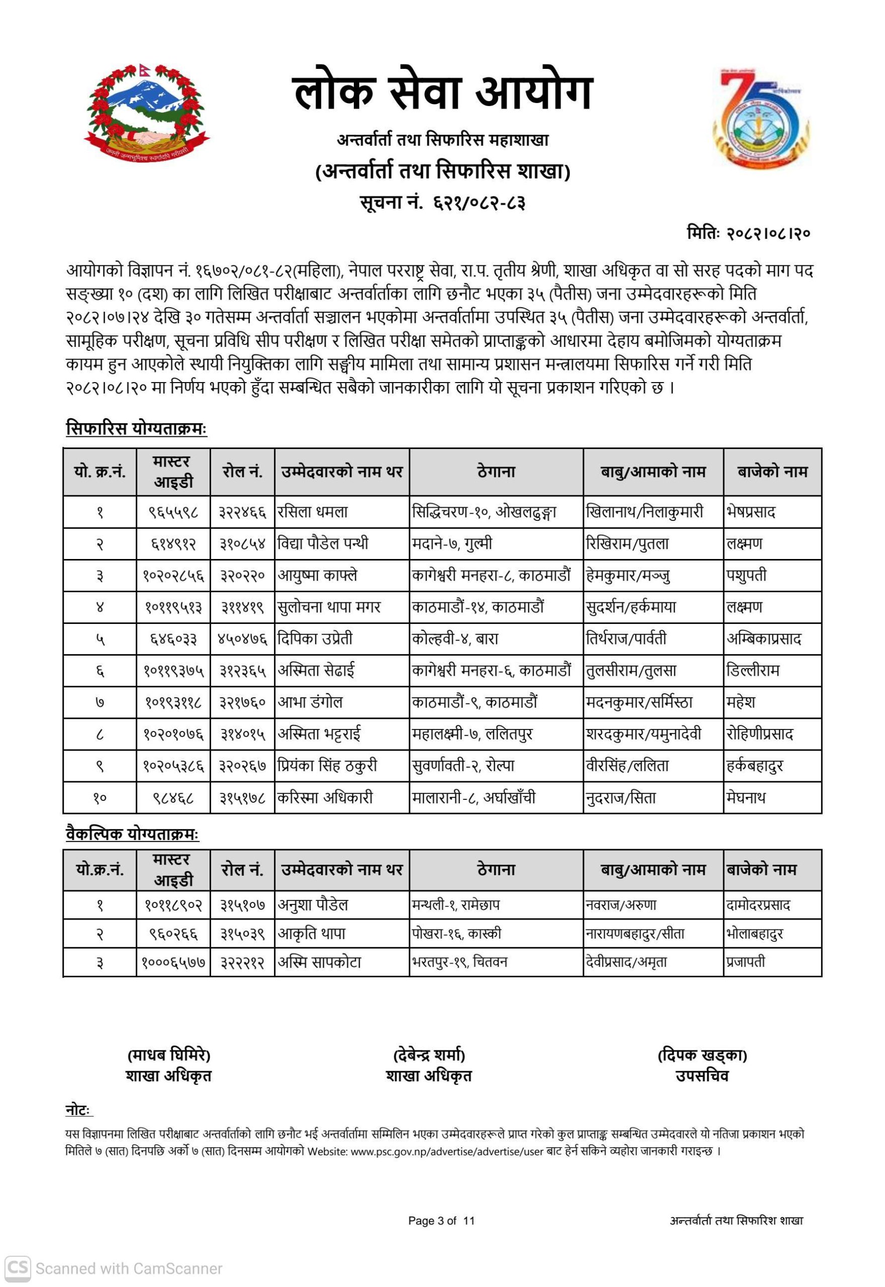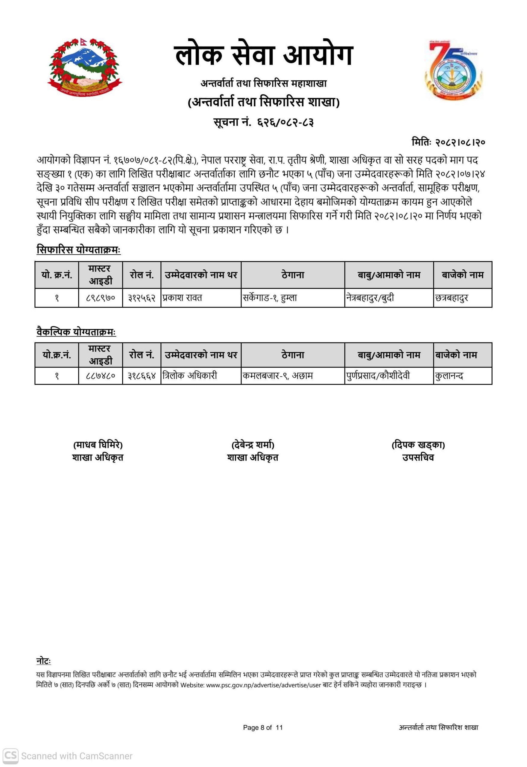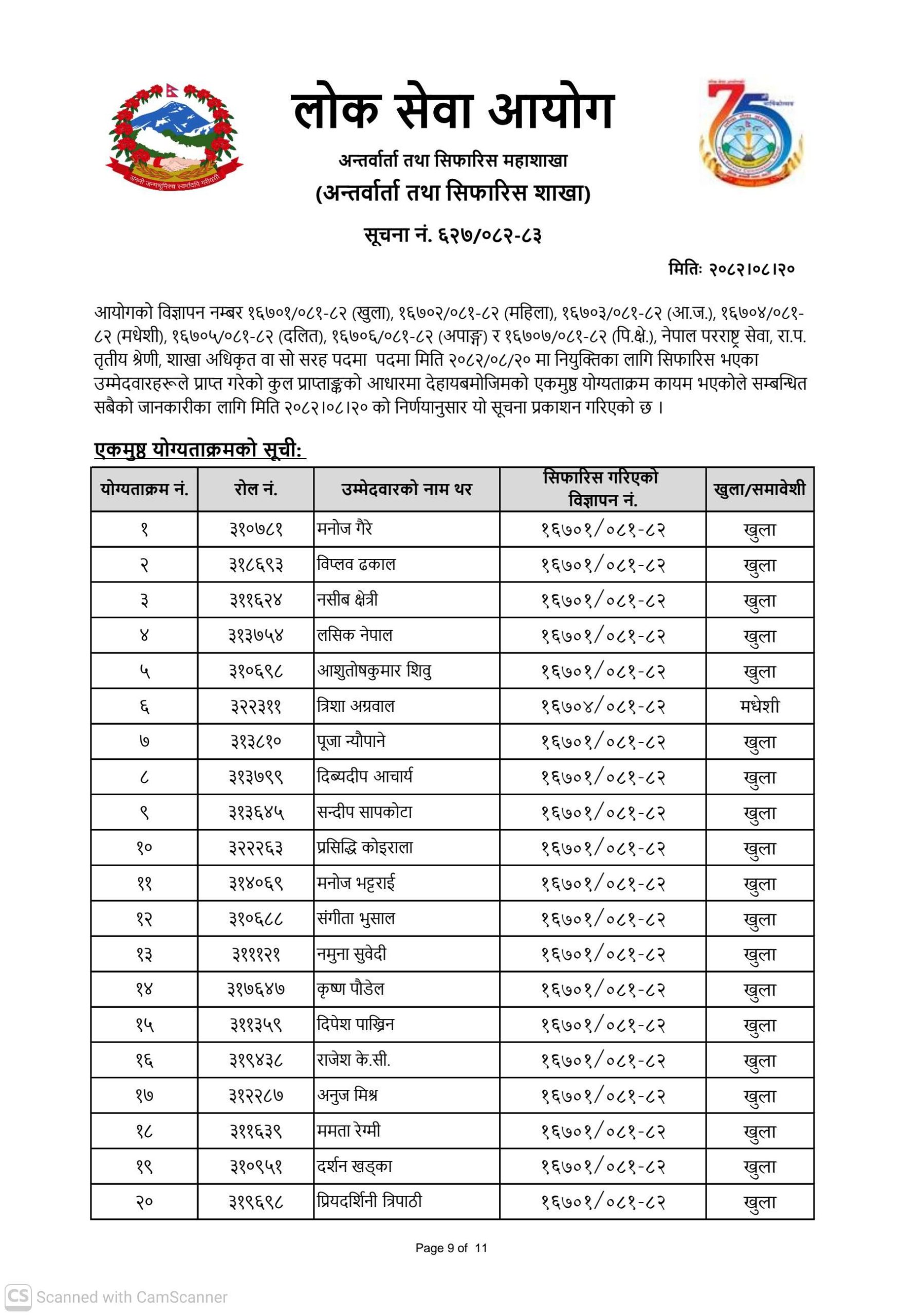 बढुवा सिफारिस भएकाहरुलाई मंसिर २३ मा सिफारिसपत्र प्रदान गरिने लोकसेवा अयोगले जनाएको छ ।
