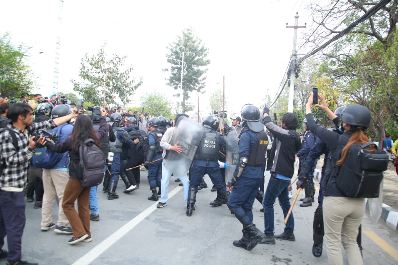 काठमाडौं।नेकपा एमालेका कार्यकर्ताहरुले आइतबार पनि काठमाडौंकाे माइतीघरमा प्रदर्शन गरेका छन्। आन्दोलनको दोस्रो दिन आइतबार गरेको प्रदर्शनमा माइतीघर तनावग्रस्त भएको छ । प्रहरी र पदर्शनकारीको बीच झडप हुँदा एमालेका कार्यकर्ता घाइते भएका हुन् ।