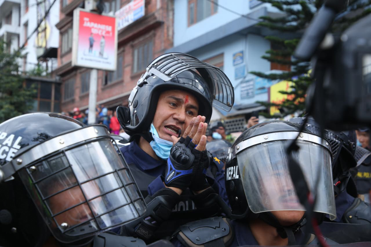 एमालेको प्रदर्शनले माइतीघर अस्तव्यस्त, केही आन्दोलनकारी घाइते(फोटो फिचर)