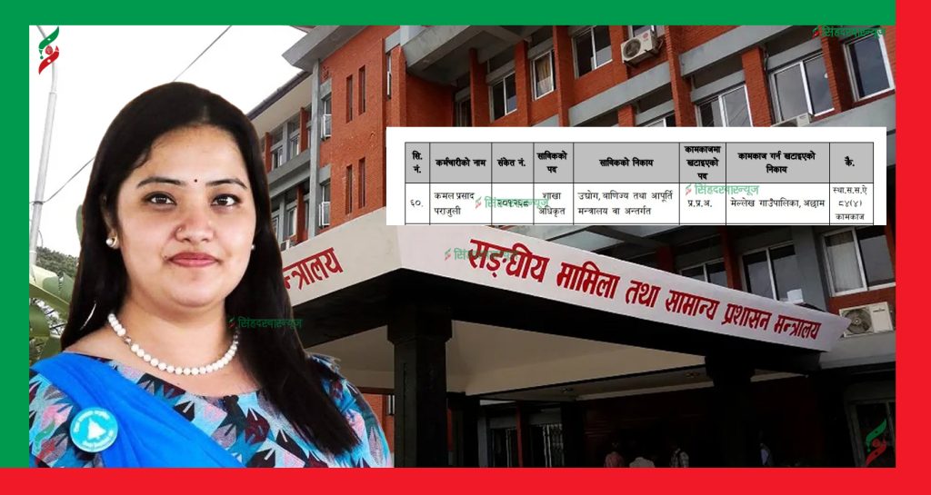 काठमाडौं । संघीय मामिला तथा सामान्य प्रशासन मन्त्रालयमा नयाँ मन्त्री प्रतिभा रावल नियुक्त भएसँगै मन्त्रालयका गतिविधिहरू विवादमा तानिन थालेका छन्। हालै ७८ जना शाखा अधिकृतहरूको सरुवा सूची सार्वजनिक भएसँगै एक निलम्बित कर्मचारीको सरुवाले थप प्रश्न उठाएको छ। शाखा अधिकृत कमलप्रसाद पराजुलीलाई प्रमुख प्रशासकीय अधिकृतको जिम्मेवारीसहित अछामको मेल्लेख गाउँपालिकामा सरुवा गरिएको छ। तर, उनी यसअघि नै … Continue reading निलम्बित कर्मचारी प्रमुख प्रशासकीय अधिकृतमा सरुवा