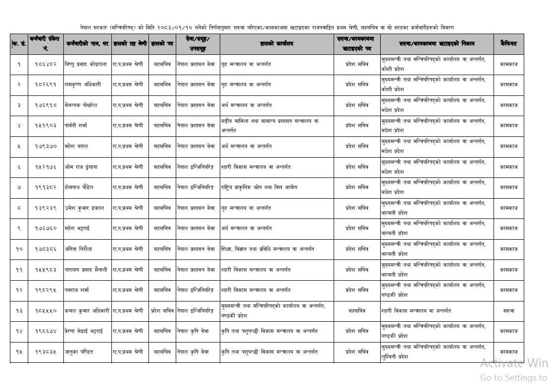 बिहीवार(आज) बसेको मन्त्रिपरिषद् बैठकले विभिन्न निकायमा कार्यरत सहसचिवहरूको सरुवा गरेको हो ।