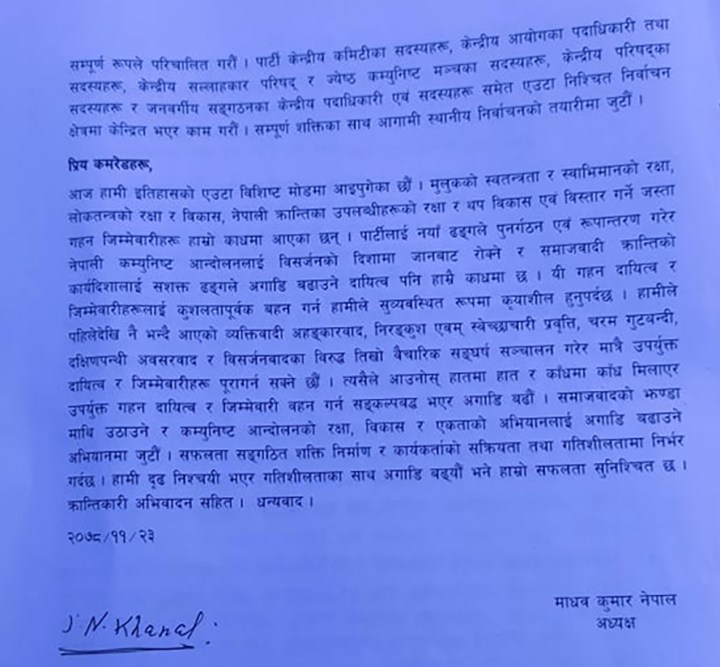 एमसीसी पारितमा पार्टीले लिएको अडान राष्ट्रिय अडान सावित भयो : अध्यक्ष नेपाल (पूर्णपाठ)